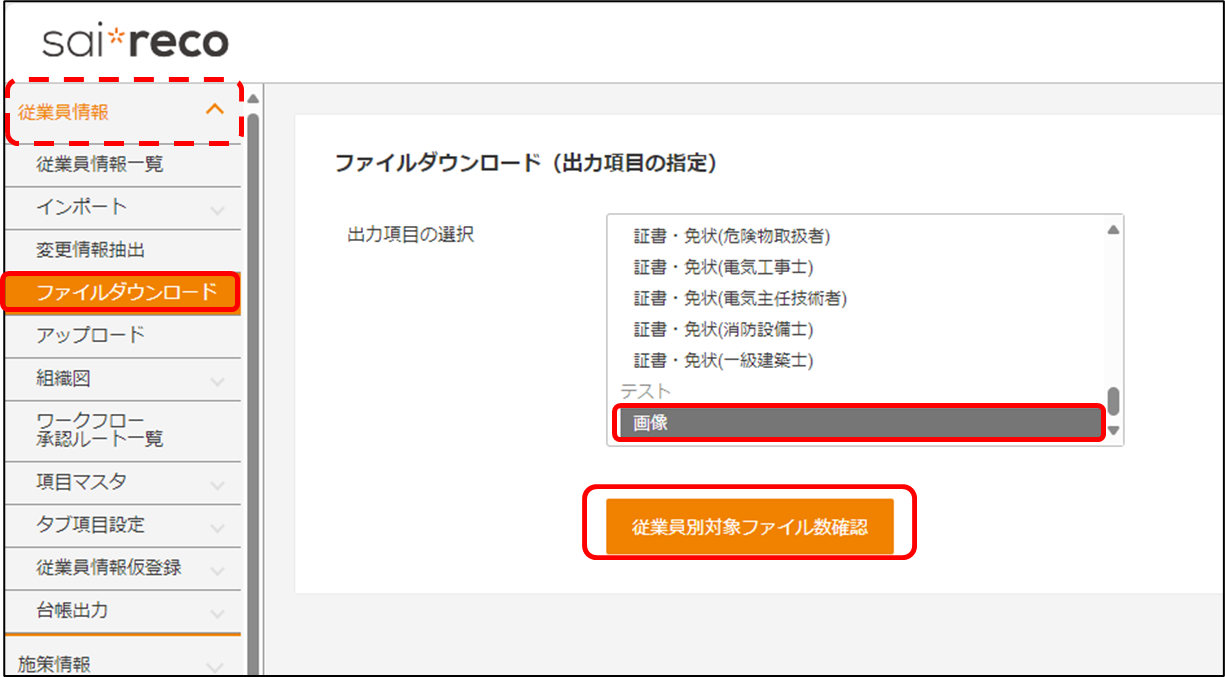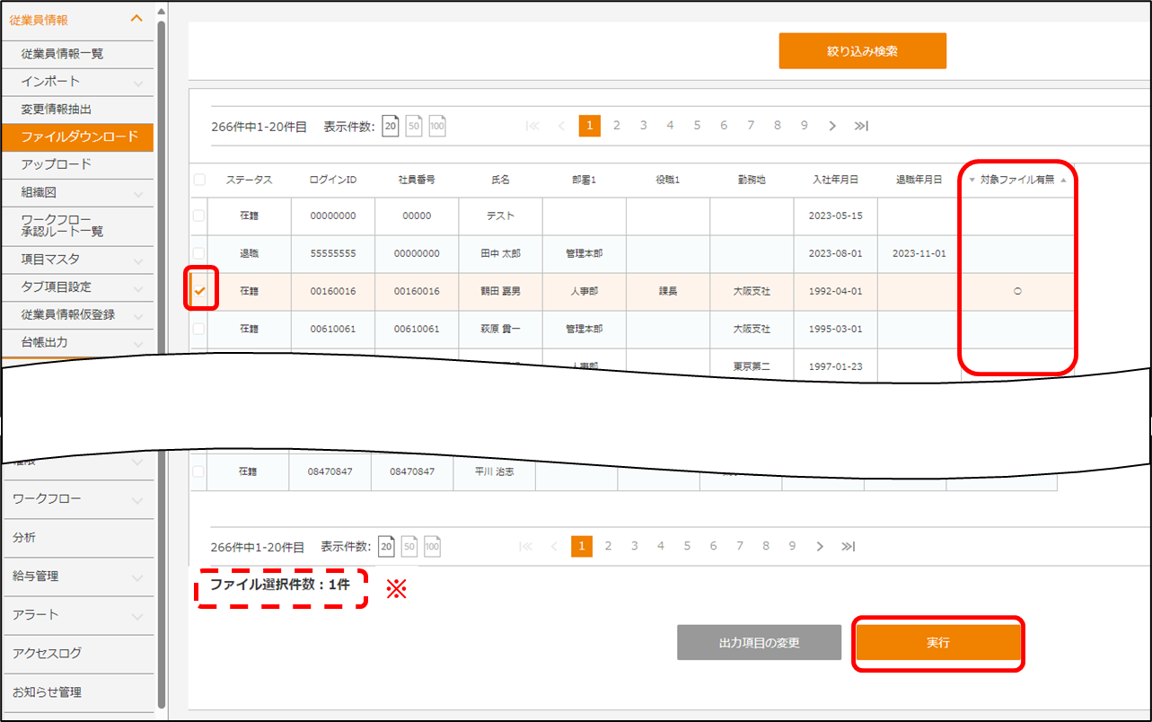 従業員情報にアップロードされたファイルを一括でダウンロードすることはできますか?